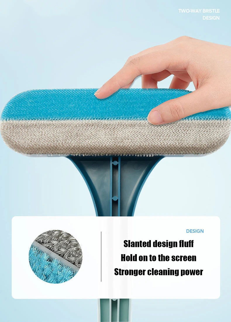 High density fleece, clean inside and out The brush head is made of high-density soft fluff material Cleaning screen windows is efficient, brushing on one side and cleaning on both sides